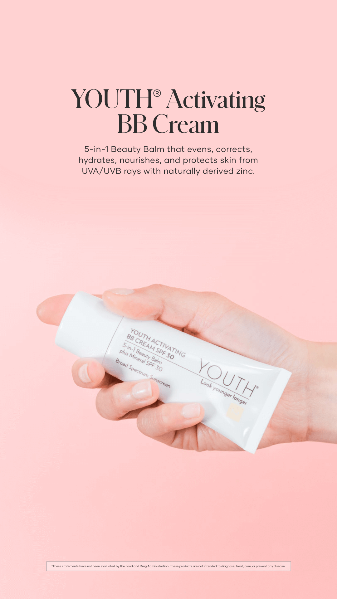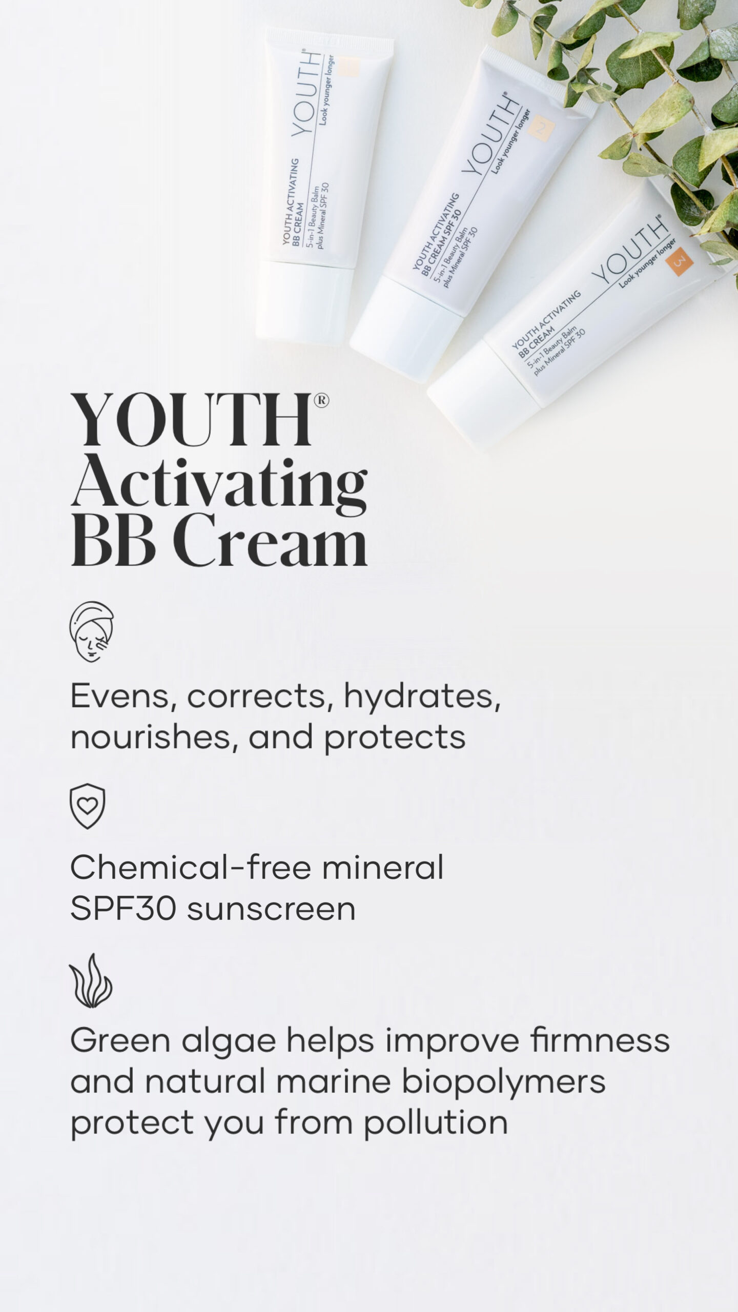 YOUTH Activating BB Cream redefines clean luxury makeup: science-backed botanicals meet mineral protection in a multitasking balm that lets your skin breathe, glow, and thrive. Simplify your routine, protect your future glow, and embrace flawless skin every day.