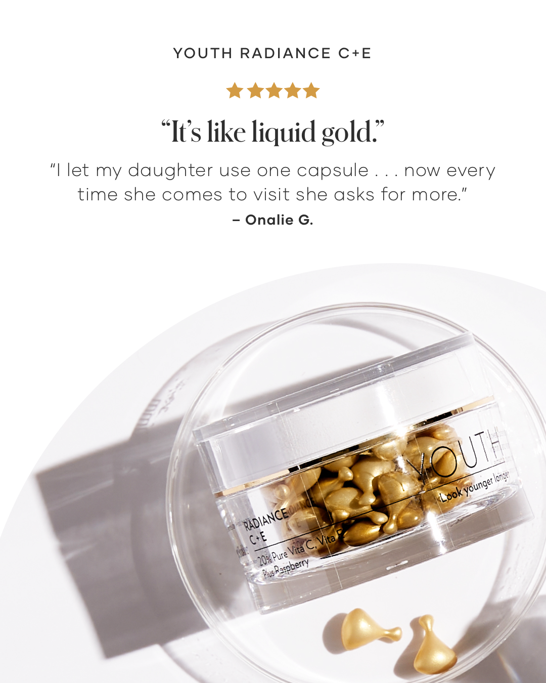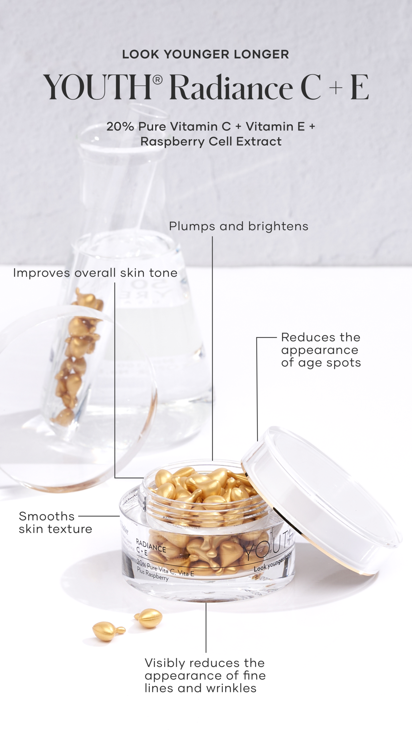 Elevate your glow with clean, powerful vitamin C care. Shop YOUTH® Radiance C+E today and let your skin shine brighter every day.